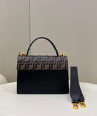 FENDI KANI 26 BAG IN BLACK MIX CHOCOLATE BROWN FFF CALFSKIN WITH GOLD HARDWARE
