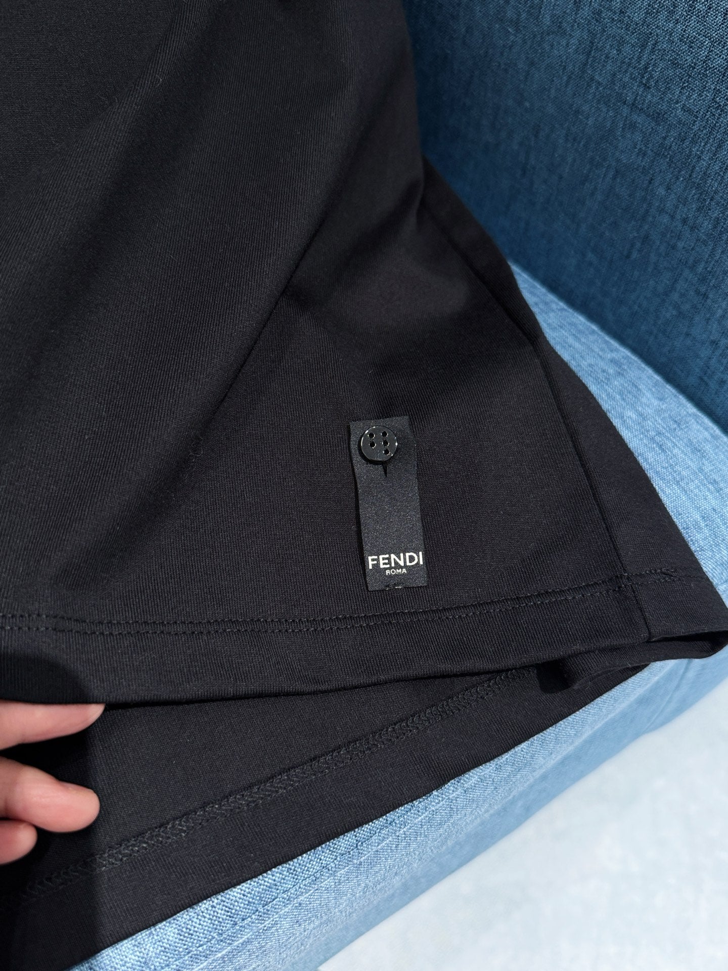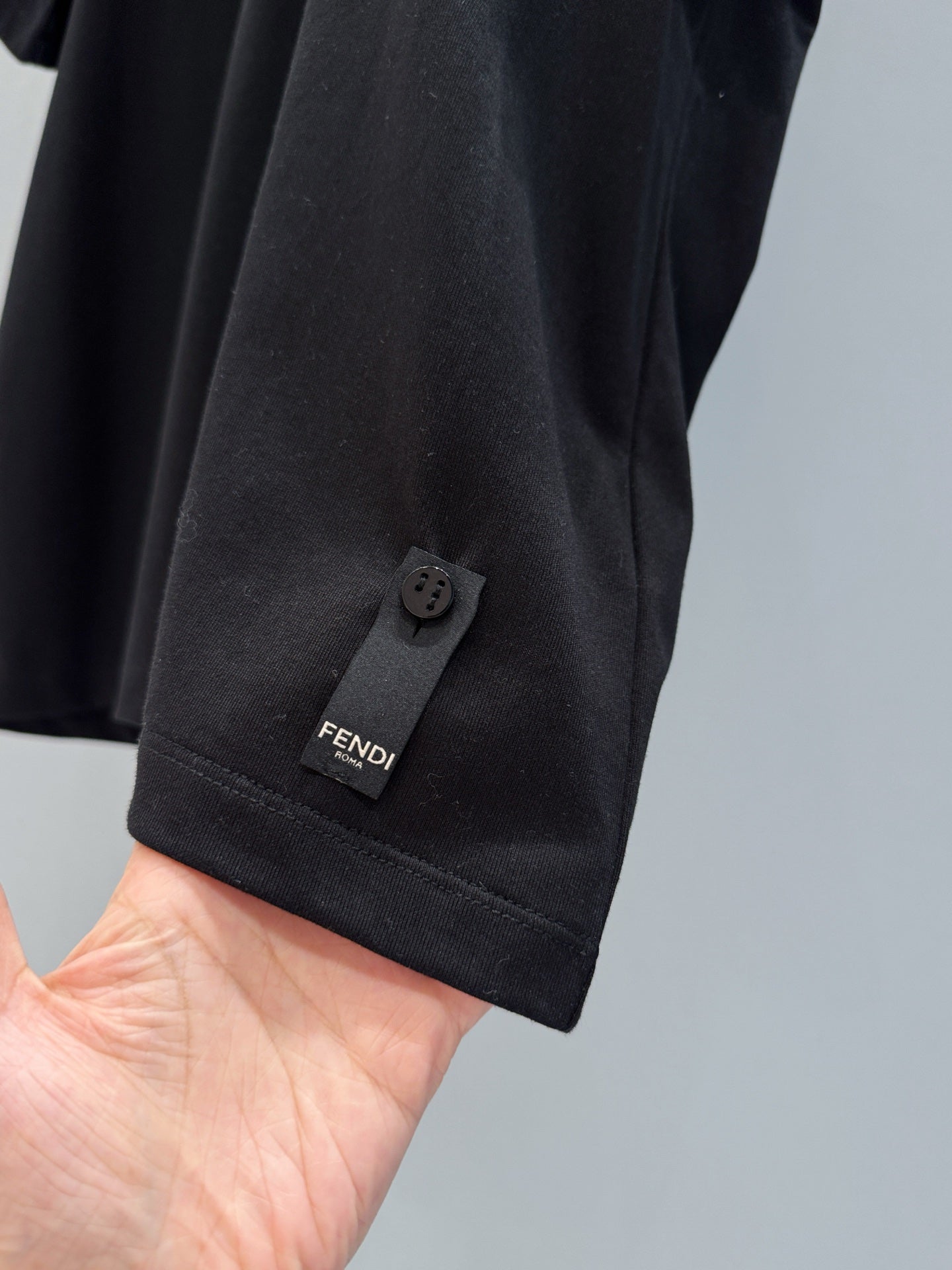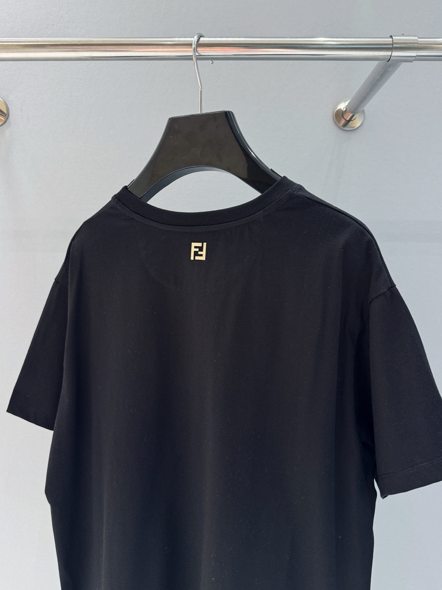 Fendi 25 Baguette Print Round Neck Short Sleeves Black Cotton