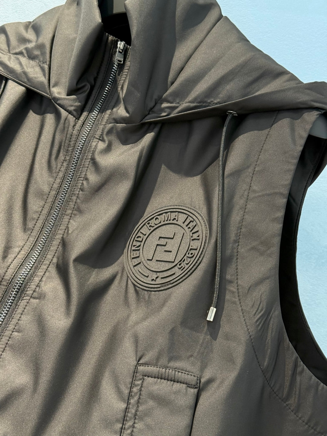 Fendi 25 Hooded Vest Black Polyester Fiber