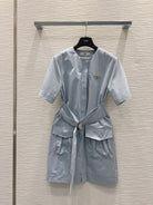 Fendi 25 Striped Dress Blue Cotton