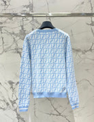 Fendi Double f Letter Knitted Cardigan Blue Wool
