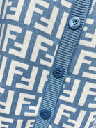Fendi Double f Letter Knitted Cardigan Steel Blue Wool