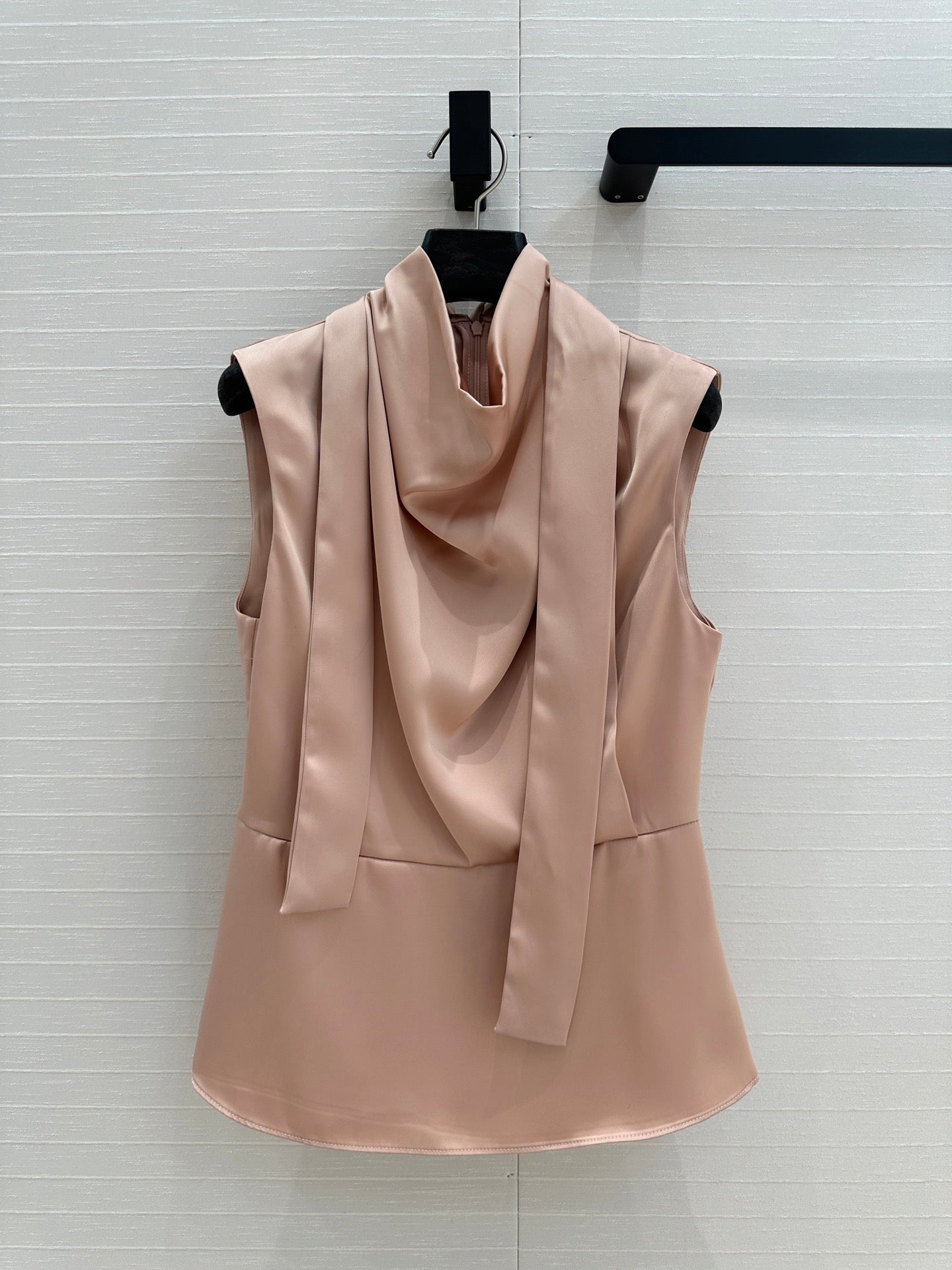 Fendi Long Ribbon Drape Waisted Top Pink Polyester