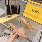 FENDI BAGUETTE SLIDES WOMEN IN DESERT SAND CALFSKIN