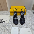 FENDI CHUNKY HIGH-HEELED SANDAL IN BLACK CALFKIN WITH GOLD HARDWARE