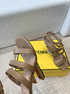FENDI HIGH SANDAL 10 CM IN SEPIA BROWN CALFSKIN