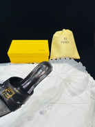 FENDI MEDIUM-HEELED 55 MM MULE IN BLACK LAMBSKIN WITH GOLD HARDWARE