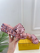 FENDI THICK SOLE 6 CM SEQUIN SLIPPER ROUGH PINK