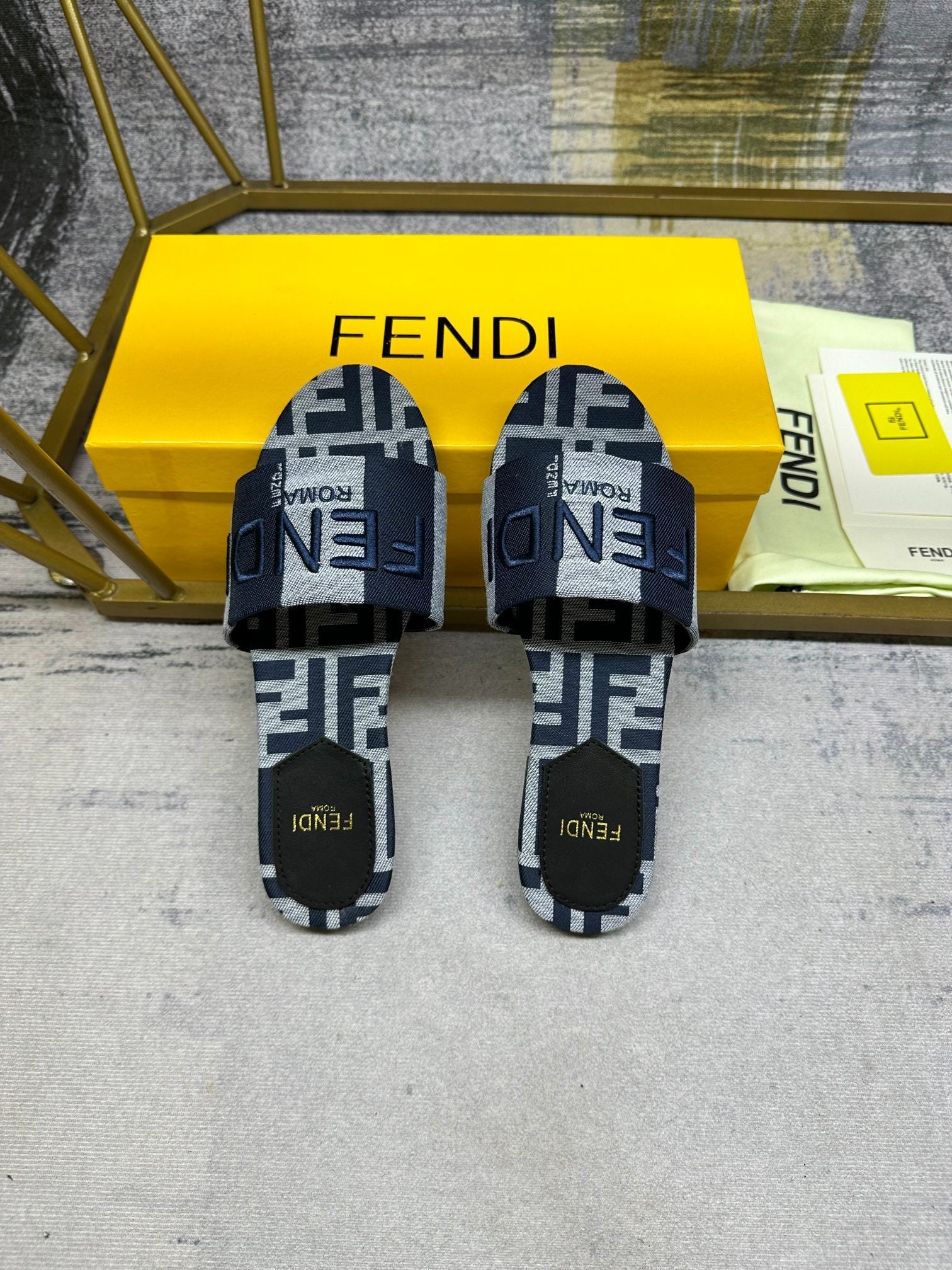 FF 5 Black Blue Grey Canvas Slide
