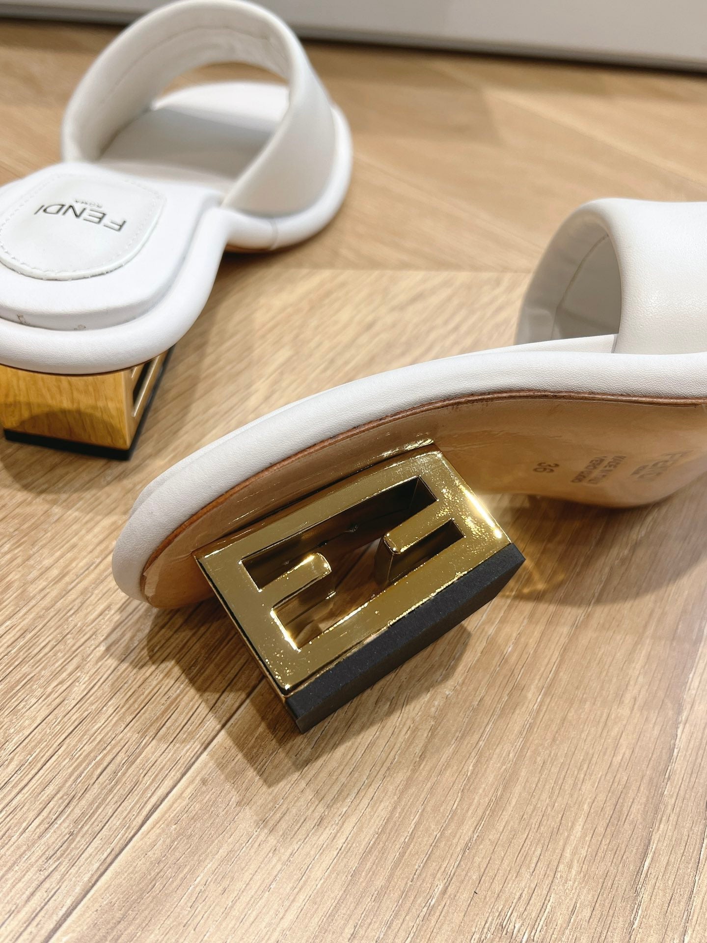 FF Baguette Slides Women 45 Nappa Leather White