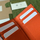 CARD HOLDER 12 IN ORANGE EMBOSSED CALFSKIN