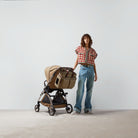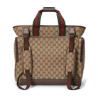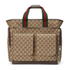 DIAPER BAG 40 WITH WEB IN BEIGE AND EBONY CANVAS MIX BROW CALFSKIN