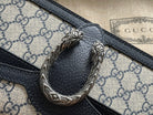 DYONYSUS SHOULDER BAG 25 IN BEIGE JACQUARD FABRIC AND BLACK CALFSKIN TRIM SILVER HARDWARE