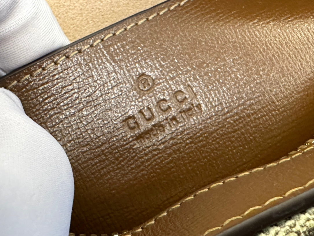 GG 20 HORSEBIT 1955 SMALL BAG IN BEIGE CANVAS AND BROWN CALFSKIN