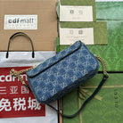 gg marmont 26cm blue monogram denim gold hardware