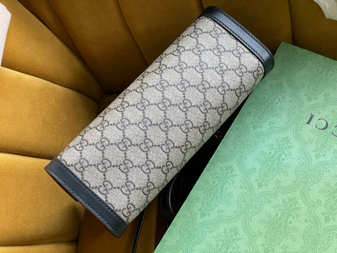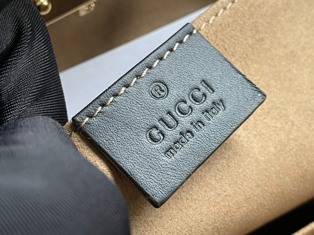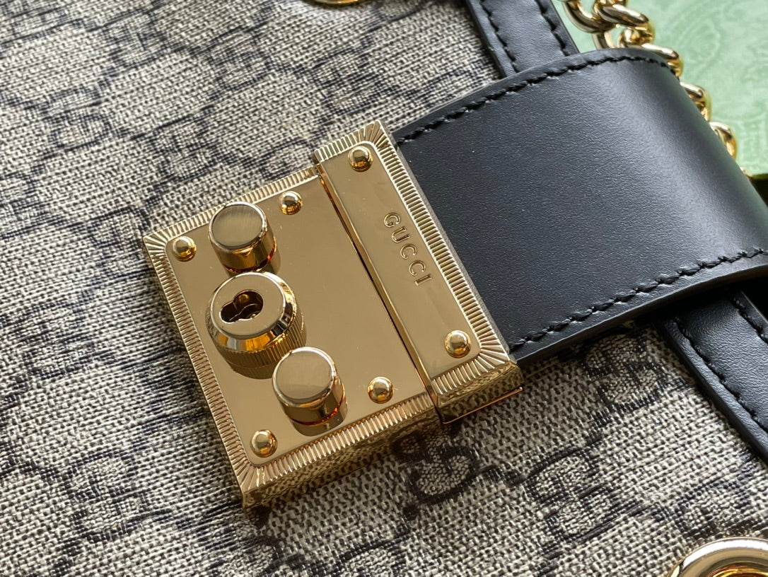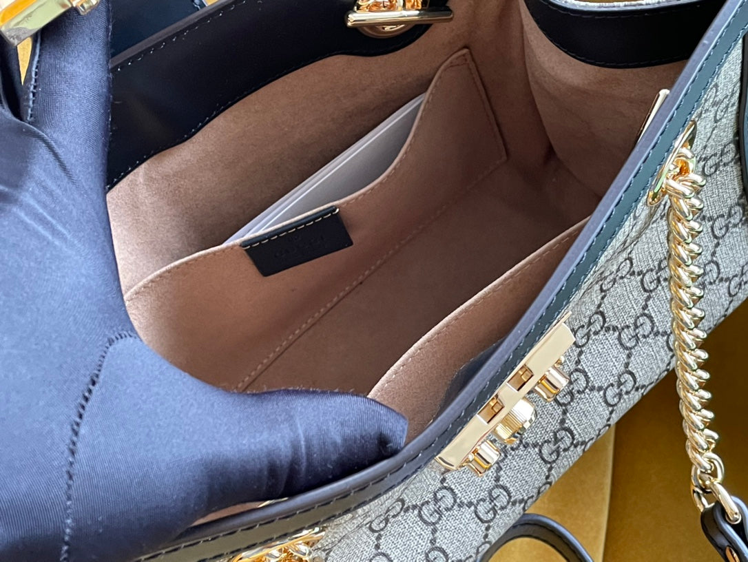 GG PADLOCK MEDIUM 26 SHOULDER BAG BEIGE CANVAS AND BLACK CALFSKIN