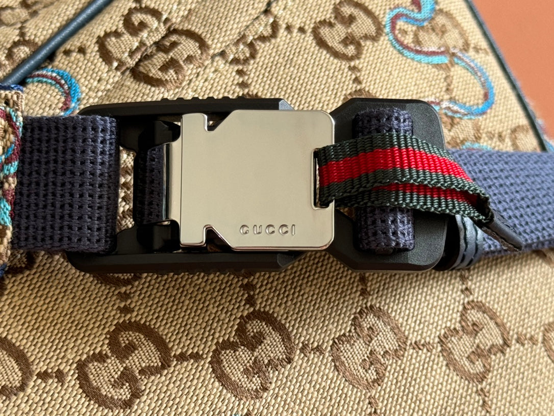 Gucci Snake Print Bag Beige mix Blue Canvas 248145