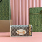 HORSEBIT 1955 WALLET IN BEIGE EBONY CANVAS MIX WHITE CALFSKIN GOLD CHAIN