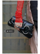 HORSEBIT CHAIN HANDBAG 38 IN BLACK CALFSKIN SILVER HARDWARE