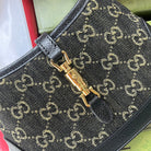 JACKIE 1961 SMALL HANDBAG 19 IN BLACK YELLOW DENIM AND BLACK CALFSKIN TRIM GOLD HARDWARE