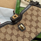 MOON SIDE SHOULDER BAG 24 IN BEIGE CANVAS AND DARK BROWN LEATHER TRIM