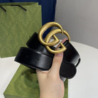 DOUBLE G MARMONT GOLD BUCKLE 40MM BLACK LEATHER