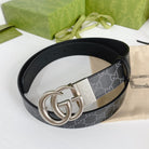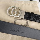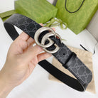 DOUBLE G SILVER BUCKLE 38MM BLACK LEATHER GREY MONOGRAM