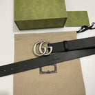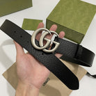 DOUBLE G SILVER BUCKLE 40MM BLACK LEATHER