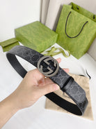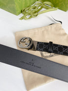 INTERLOCKING G GREY BUCKLE 38MM BLACK LEAHTER MONOGRAM