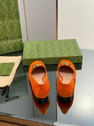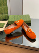 BLONDIE LOGO-PLAQUE LOAFERS IN TIGER ORANGE SUEDE