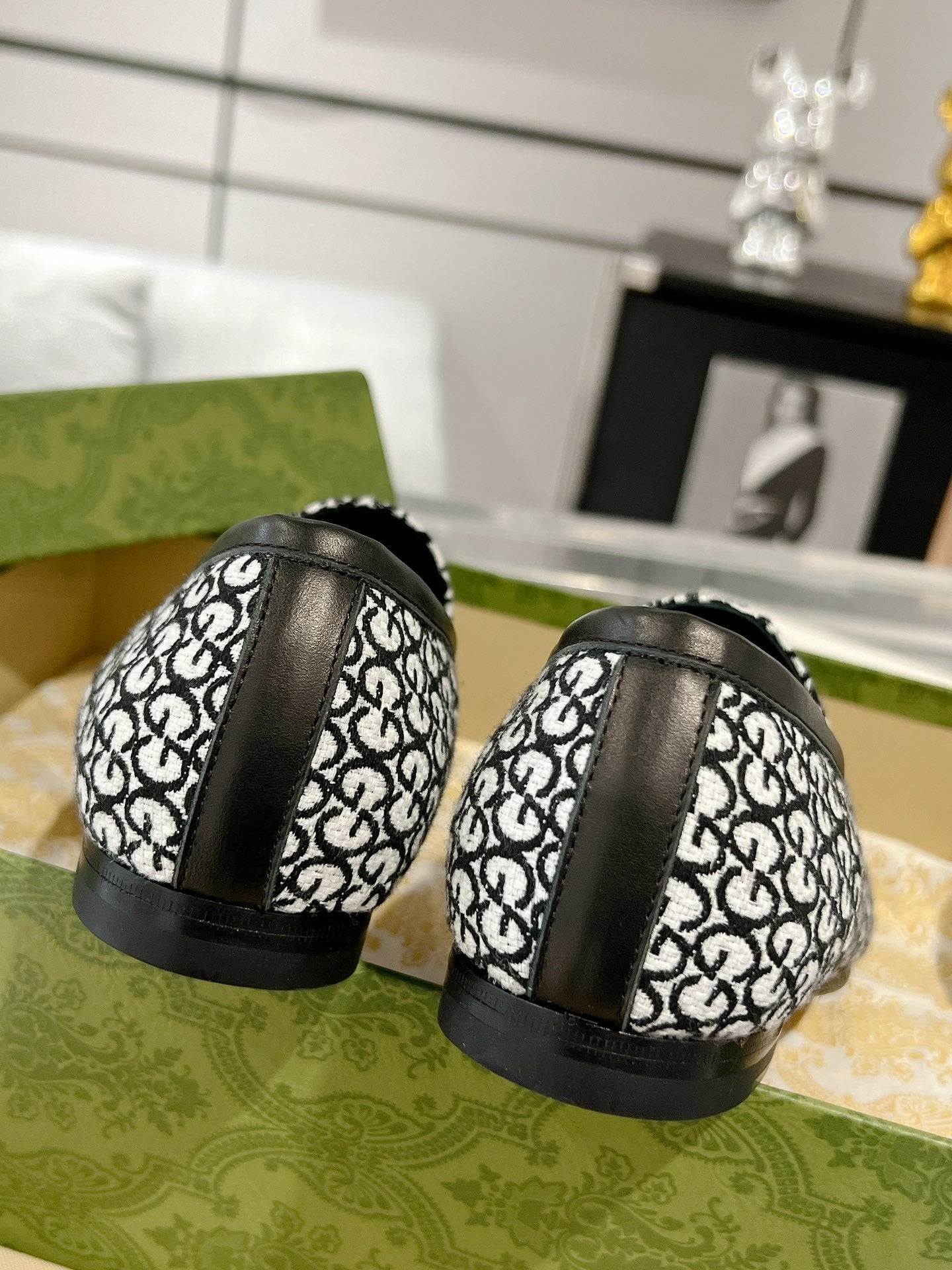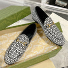 MEN'S LOAFER WITH HORSEBIT IN BLACK MIX WHITE MONOGRAM JACQUARD FABRIC