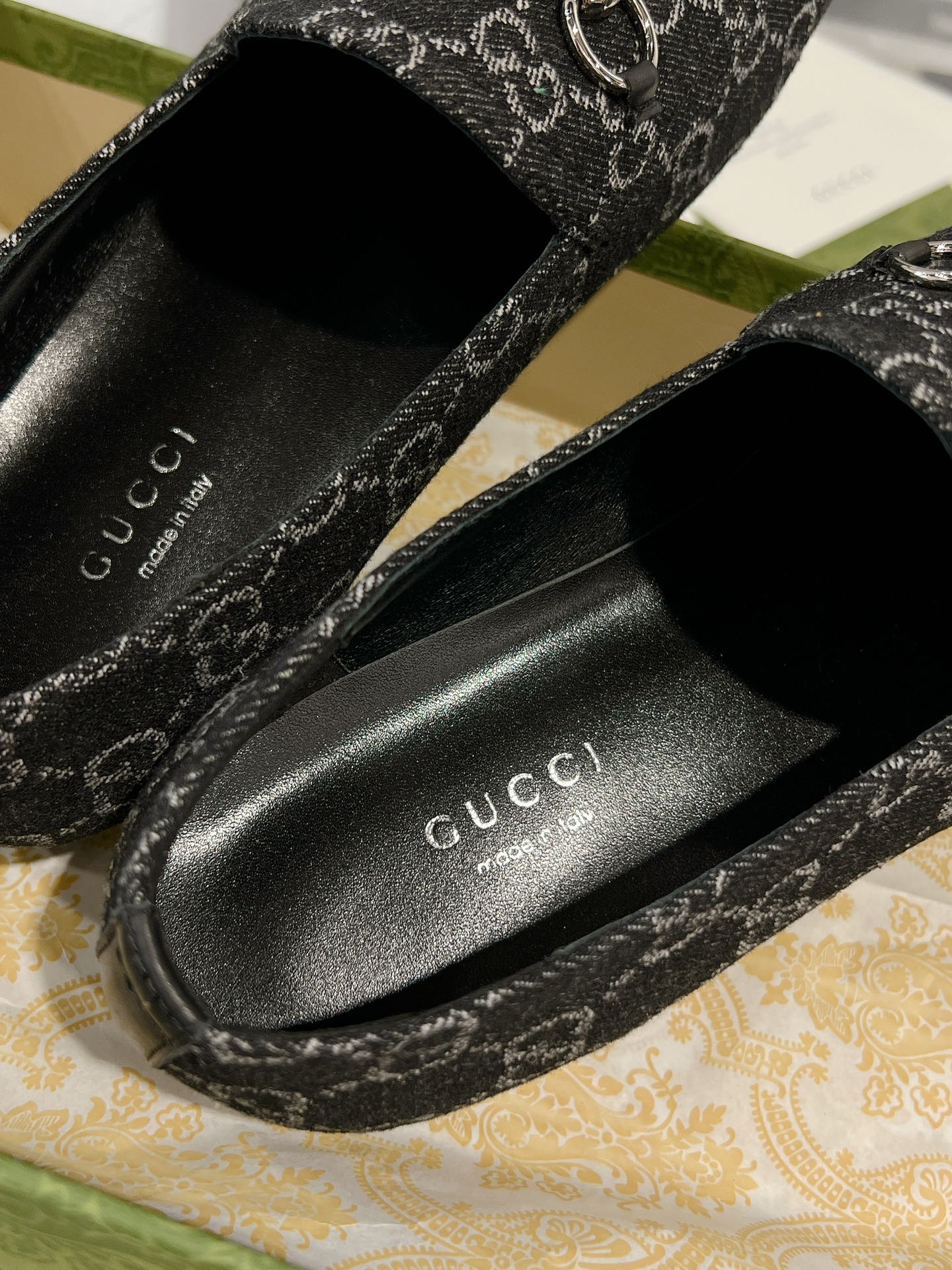 MEN'S LOAFER WITH HORSEBIT IN BLACK MONOGRAM JACQUARD FABRIC