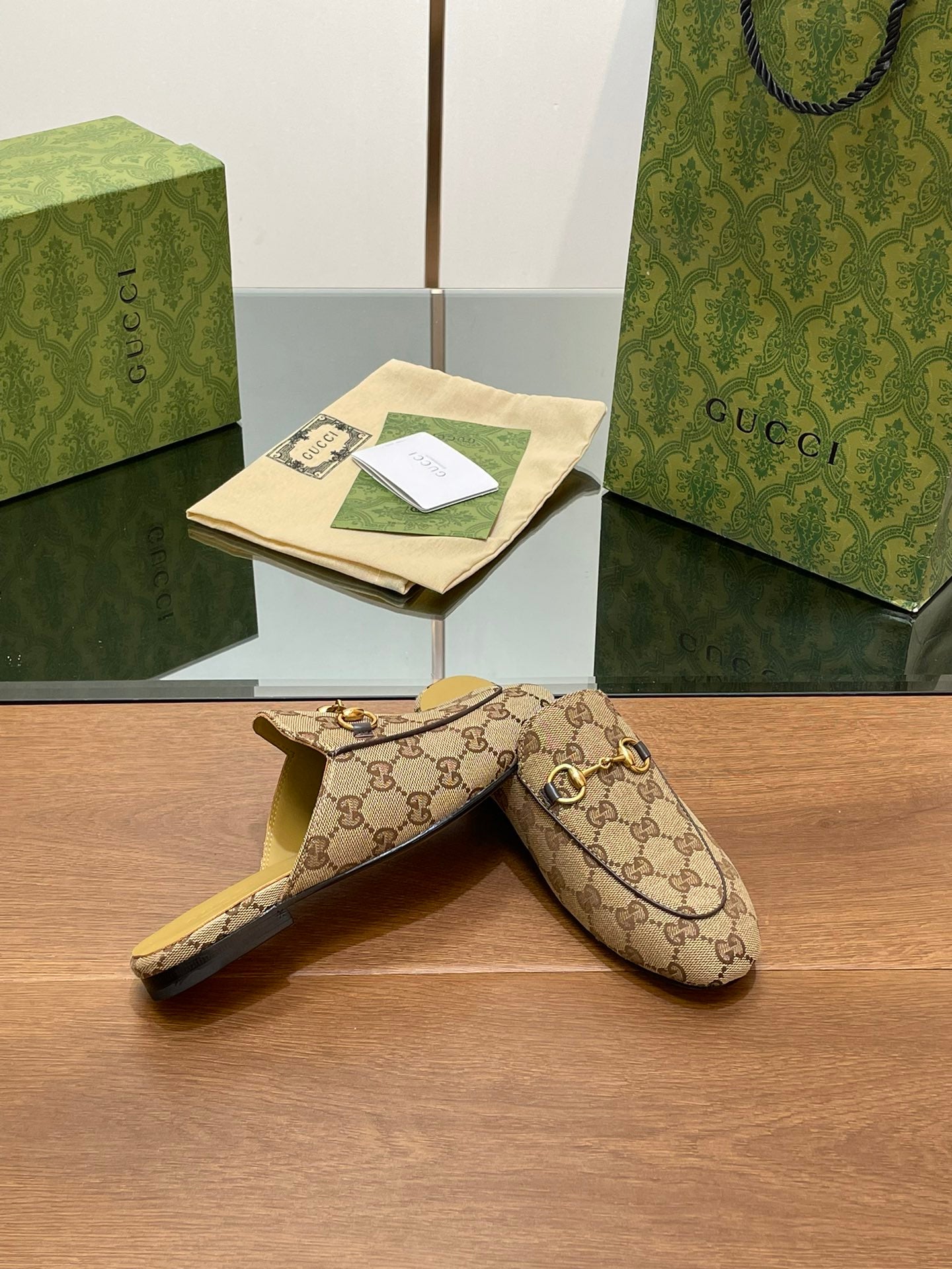 GG PRINCETOWN MULES LIGHT BROWN FABRIC