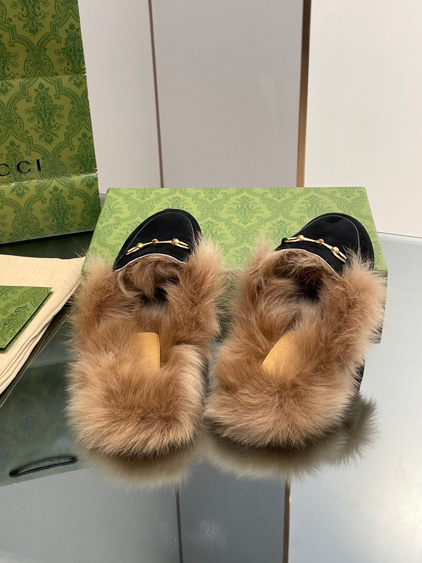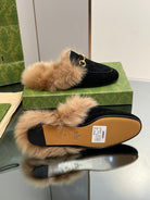 HORSEBIT MULE IN BLACK SUEDE AND LAMB WOOL LINING