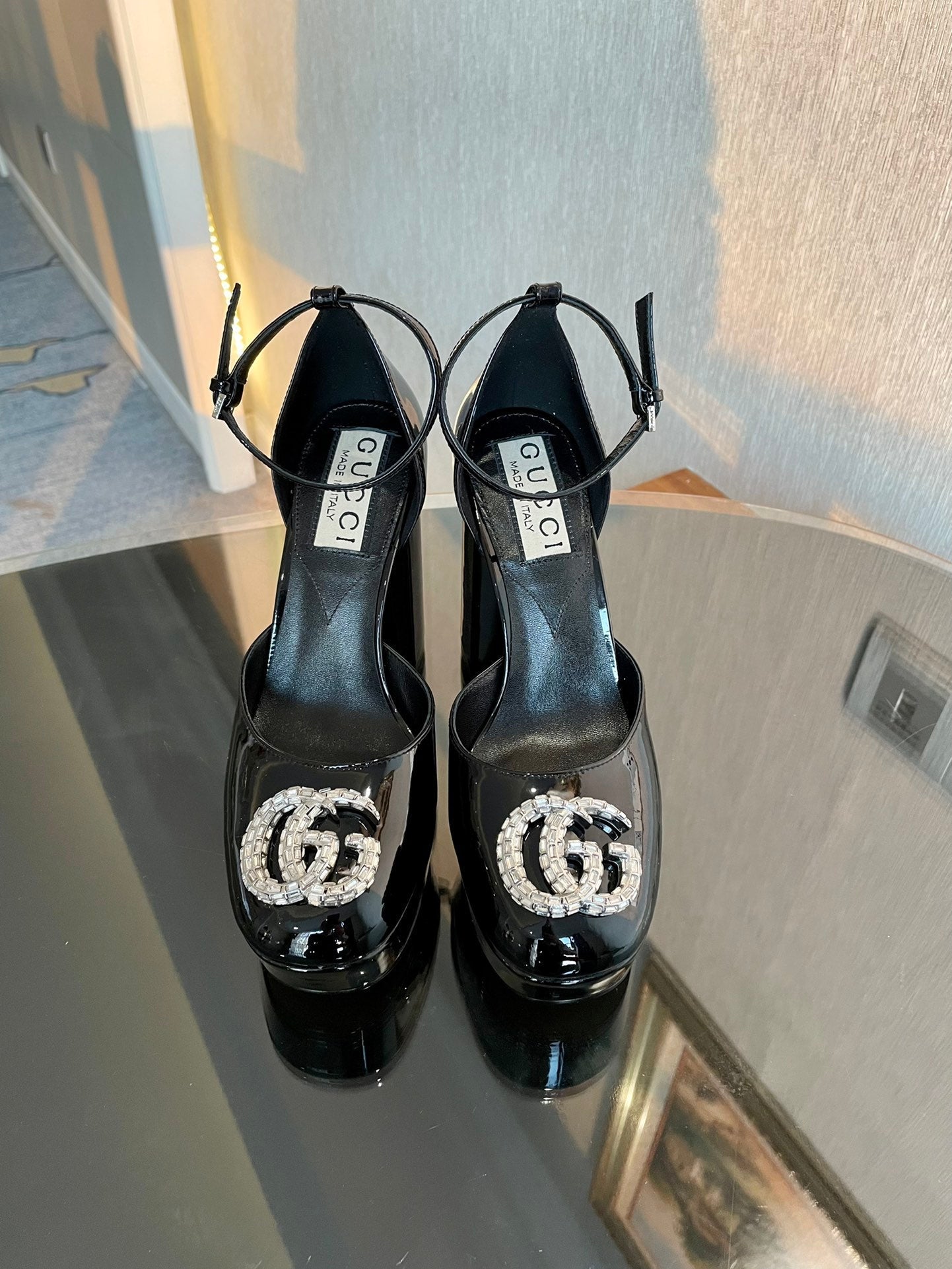 platform pump 12cm with double g black patent leather
