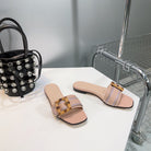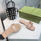 GG BAMBOO BUCKLE FLAT SANDALS BEIGE
