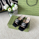 GG CRYSTAL SLIDES SANDAL BLACK AND CREAM CALFSKIN
