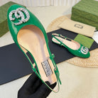 GG Double G patent leather slingback ballet flats Glossy Forest Green