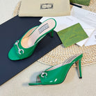 GG Women's Horsebit mid-heel slide sandal in glossy Jade Green