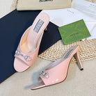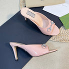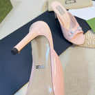 GG Women's Horsebit mid-heel slide sandal in glossy Rose Pink