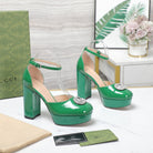 platform pump with double g green patent leather