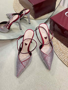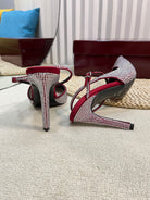 HIGH SLINGBACK 10 CM IN CHERRY RED SILK WITH FULL RHINSTONES