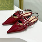 STRAPPY FLAT SLINGBACK IN SCARLET RED GLOSSY CALFSKIN