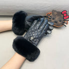 HM Glove In Black Deer Skin With Rabbit Fur 388638