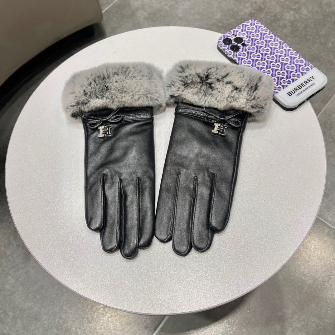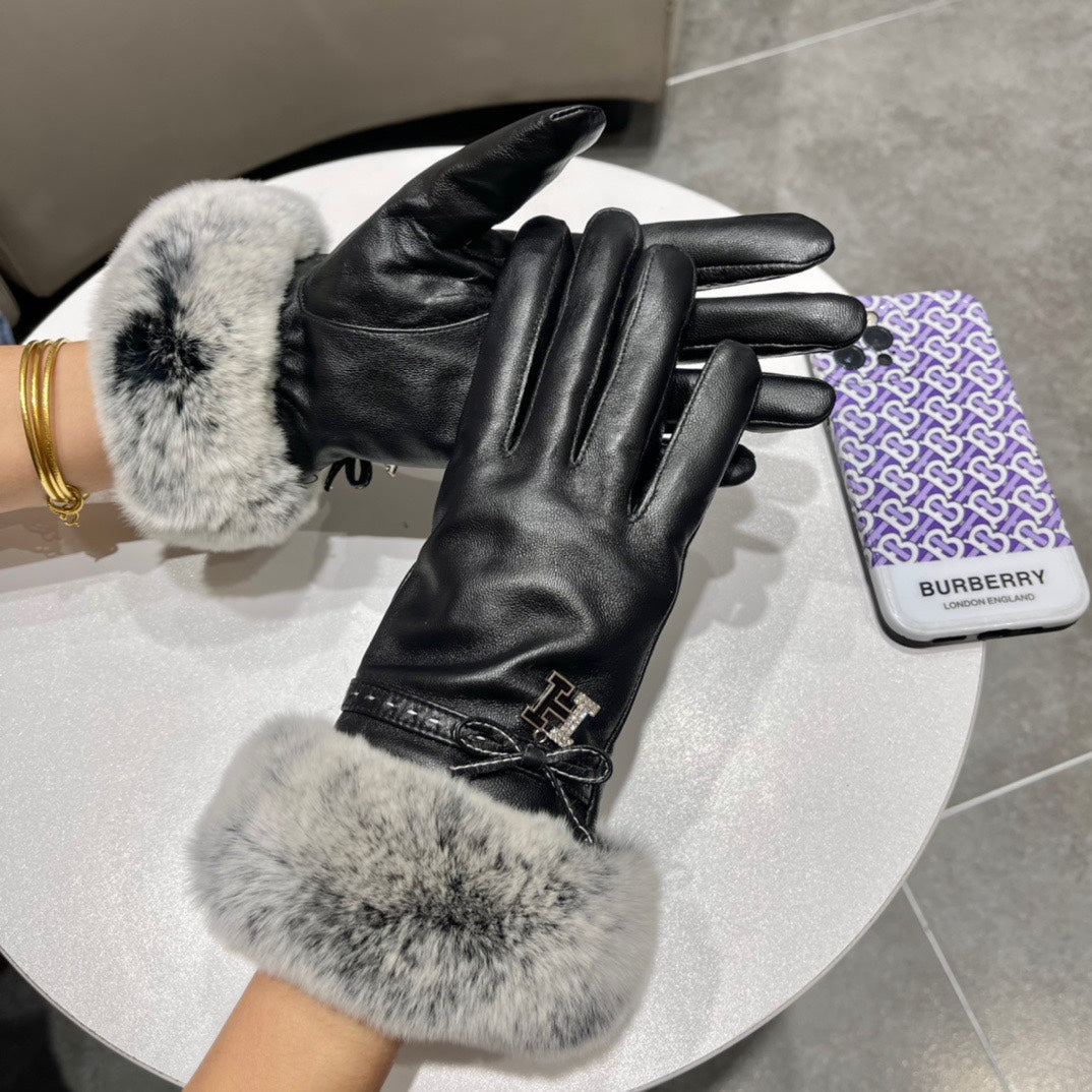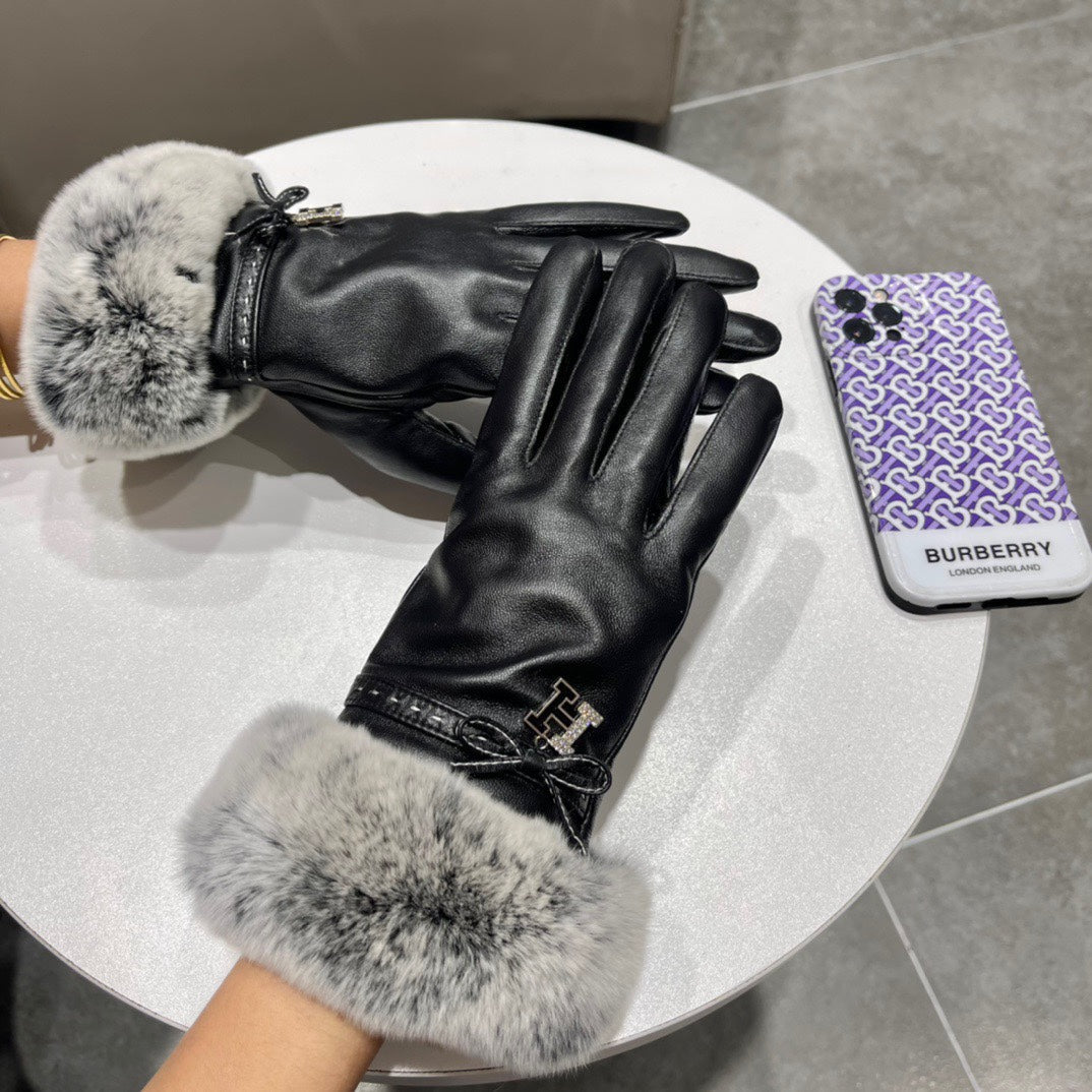 HM Glove In Black Lambskin With Rabbit Fur Lining 113709