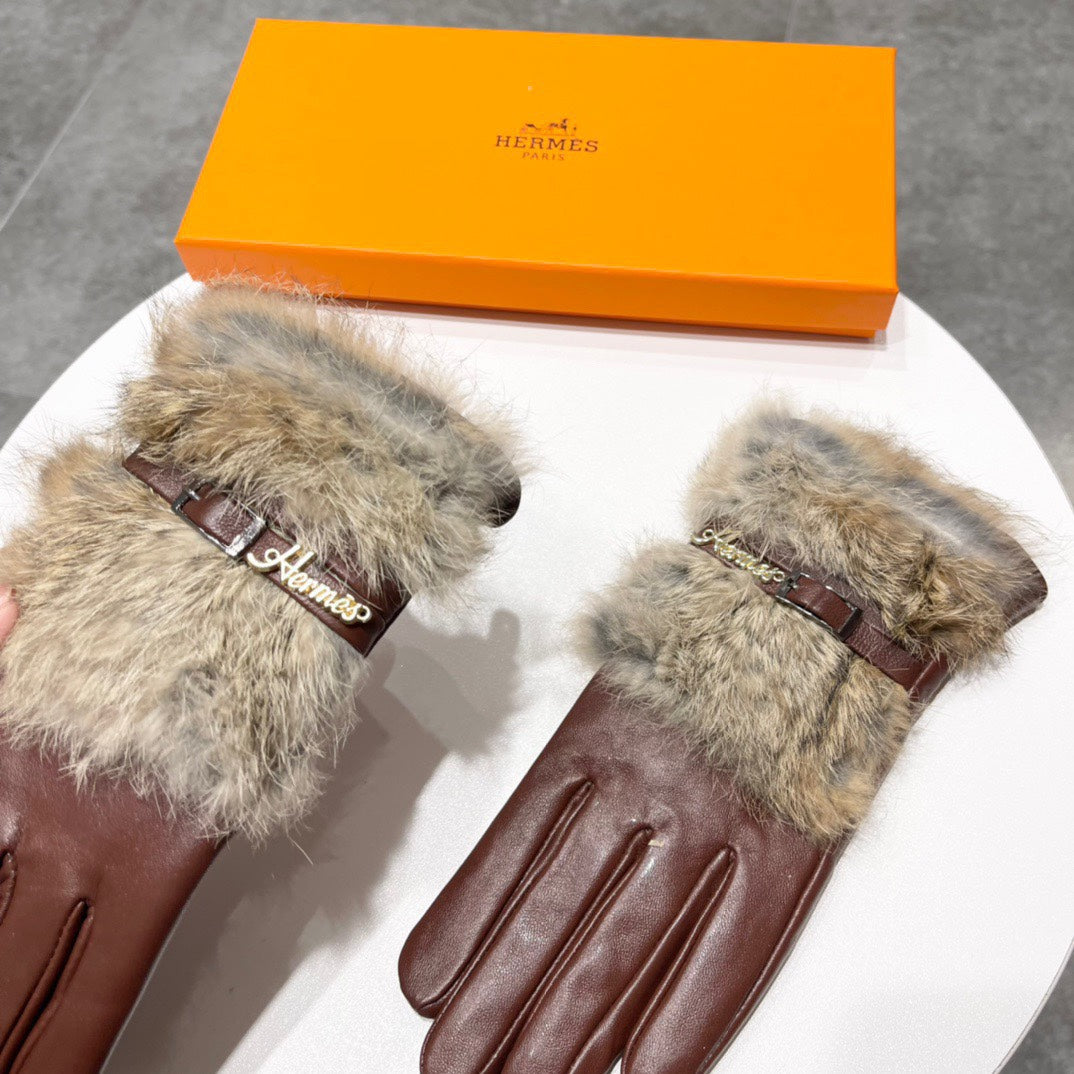 HM Glove In Brown Lambskin With Rabbit Fur Lining 103797