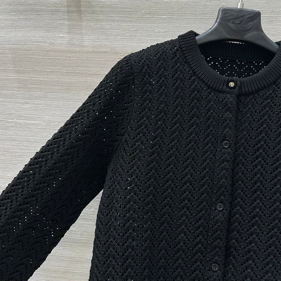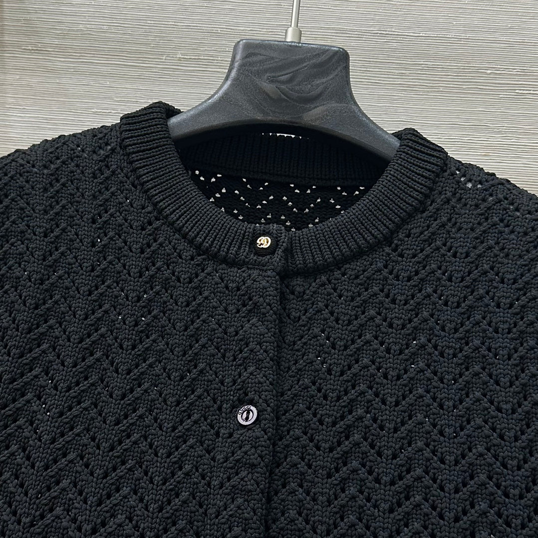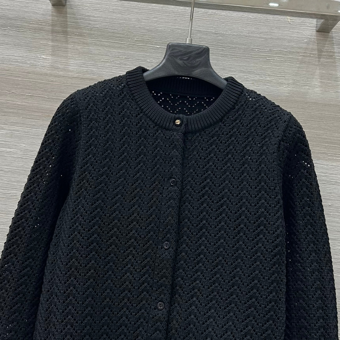 Gucci 25 Hollow Knitted Cardigan Black Polyester Fiber