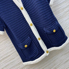 Gucci 25 Knitted Short-sleeved Cardigan Navy Blue Cotton