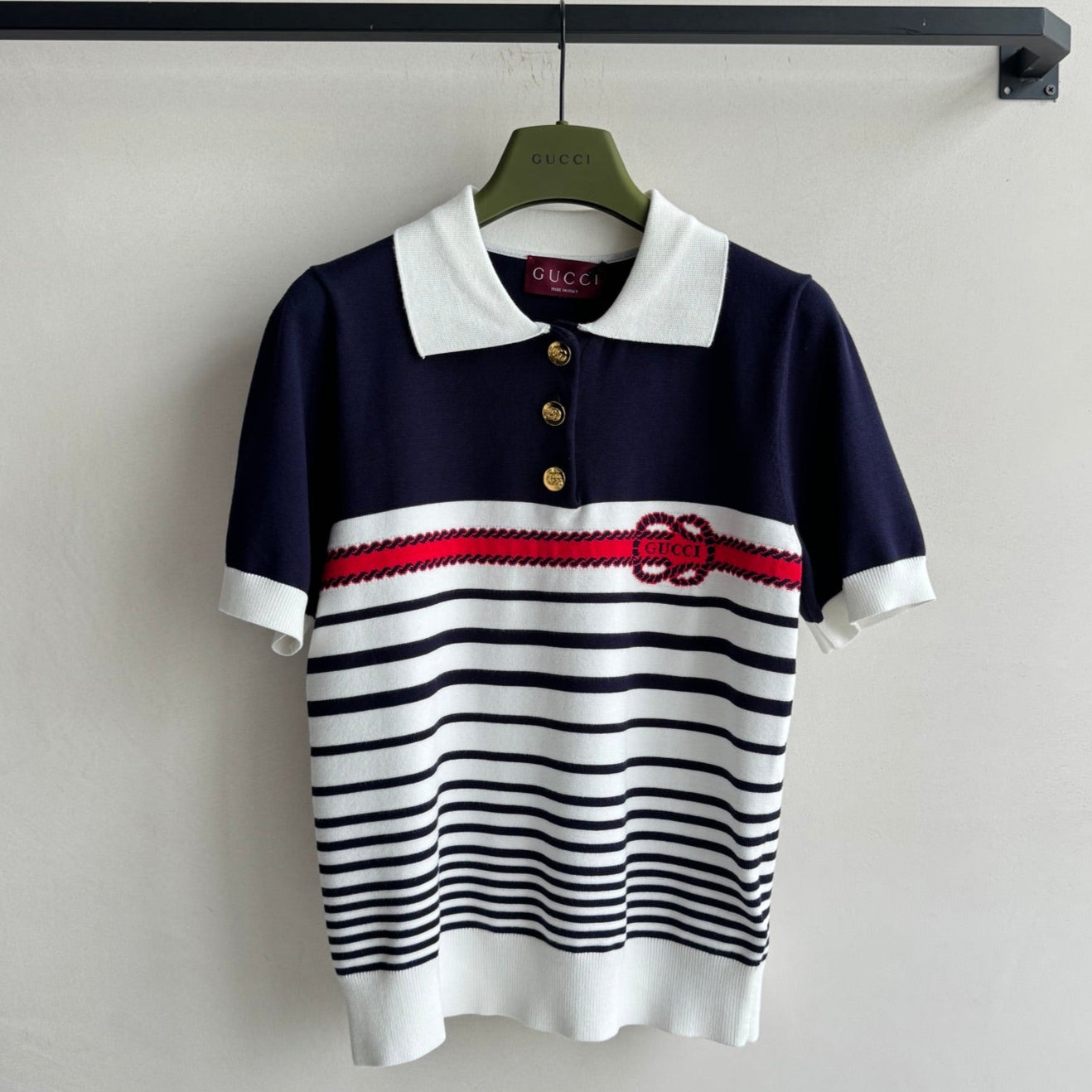 Gucci Striped Polo Knitted Top Cotton