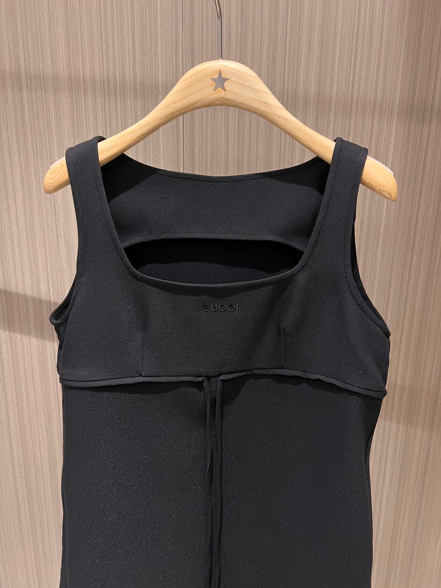 Gucci Vest Dress With Lace-up Bowknot Black Polyester Fiber